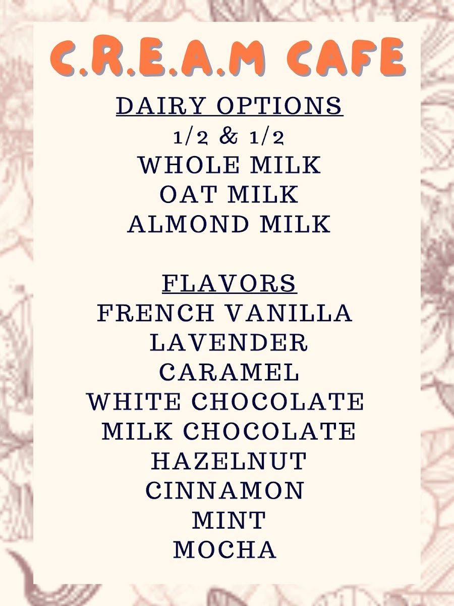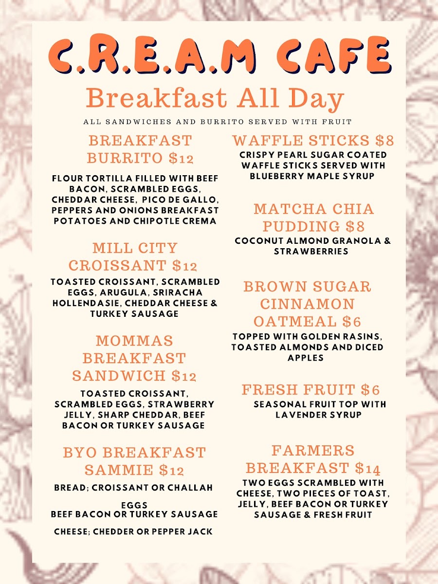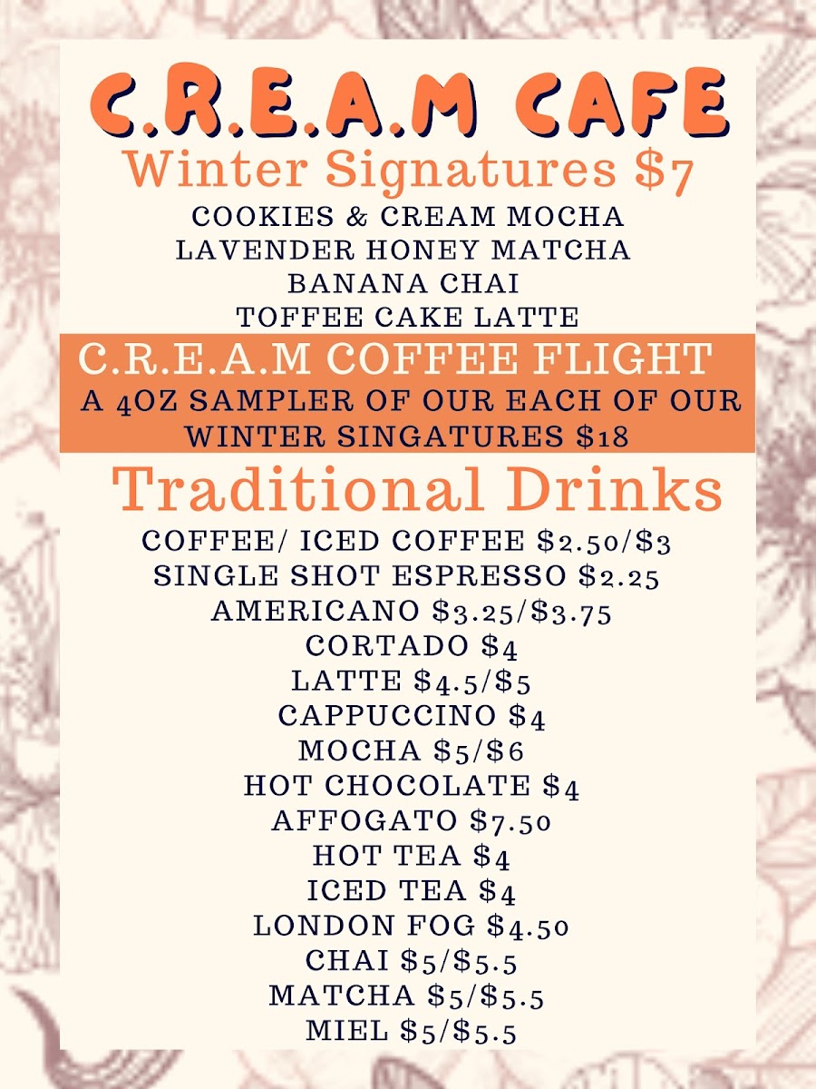 C.R.E.A.M Cafe Menu